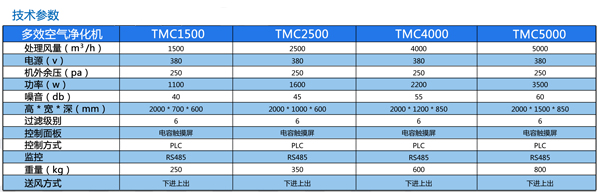 TMC柜式多效空气净化机组由初效、中效或亚高效过滤器、气体过滤器、化学过滤器、光氢离子净化装置和低噪声风机组成。(可选装电加热)