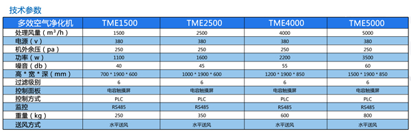TME吊顶式多效空气净化机组由初效、中效或亚高效过滤器、气体过滤器、化学过滤器、光氢离子净化装置和低噪声风机组成。(可选装电加热)