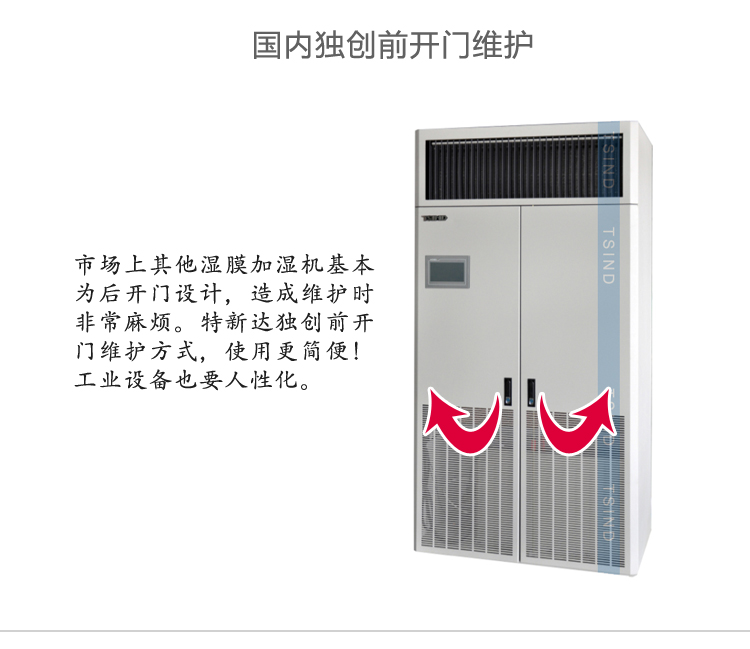 机房专用加湿器采用辉达注册独创的前开门维护方式,使维护更便捷,节约维护成本