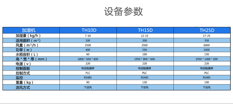 全中文电容触摸显示屏,人机界面友好 运用PLC微电脑控制技术,克服了单片机加湿控制器不稳定的问题