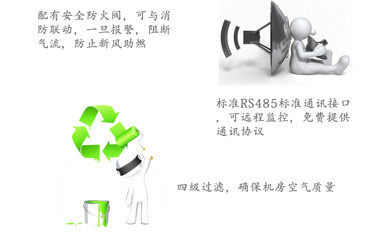 机房新风节能系统:节能系统由空气处理系统、防火系统、电控系统组成、风机系统组成